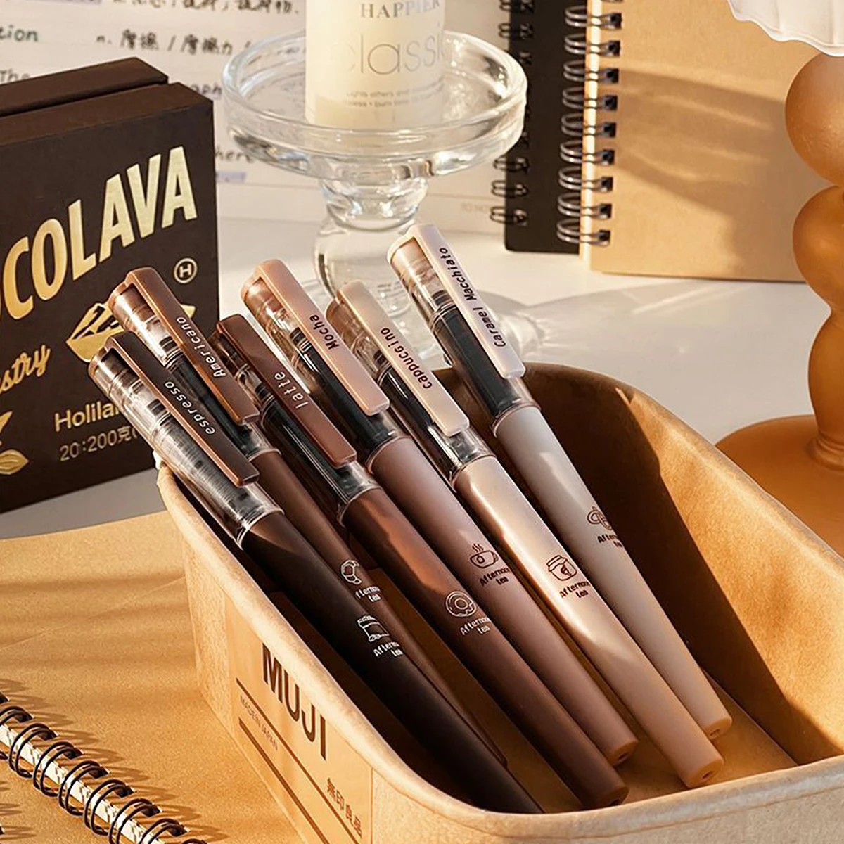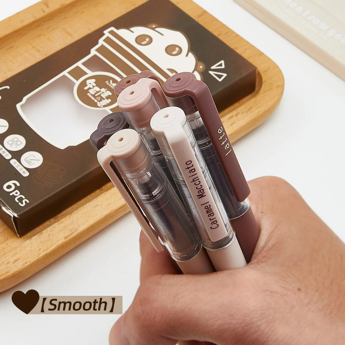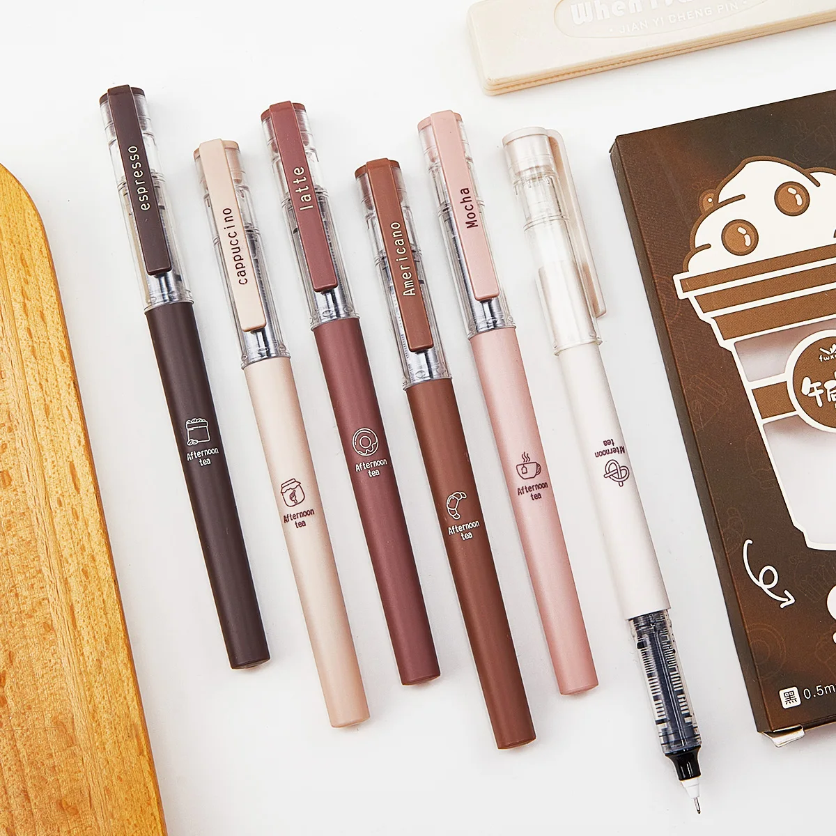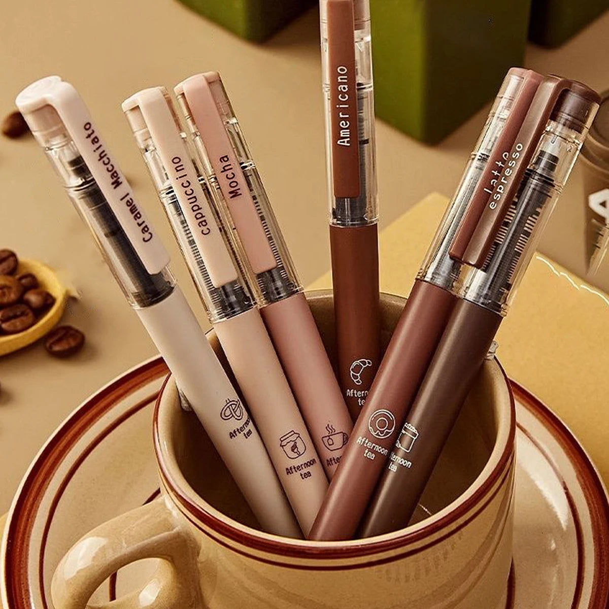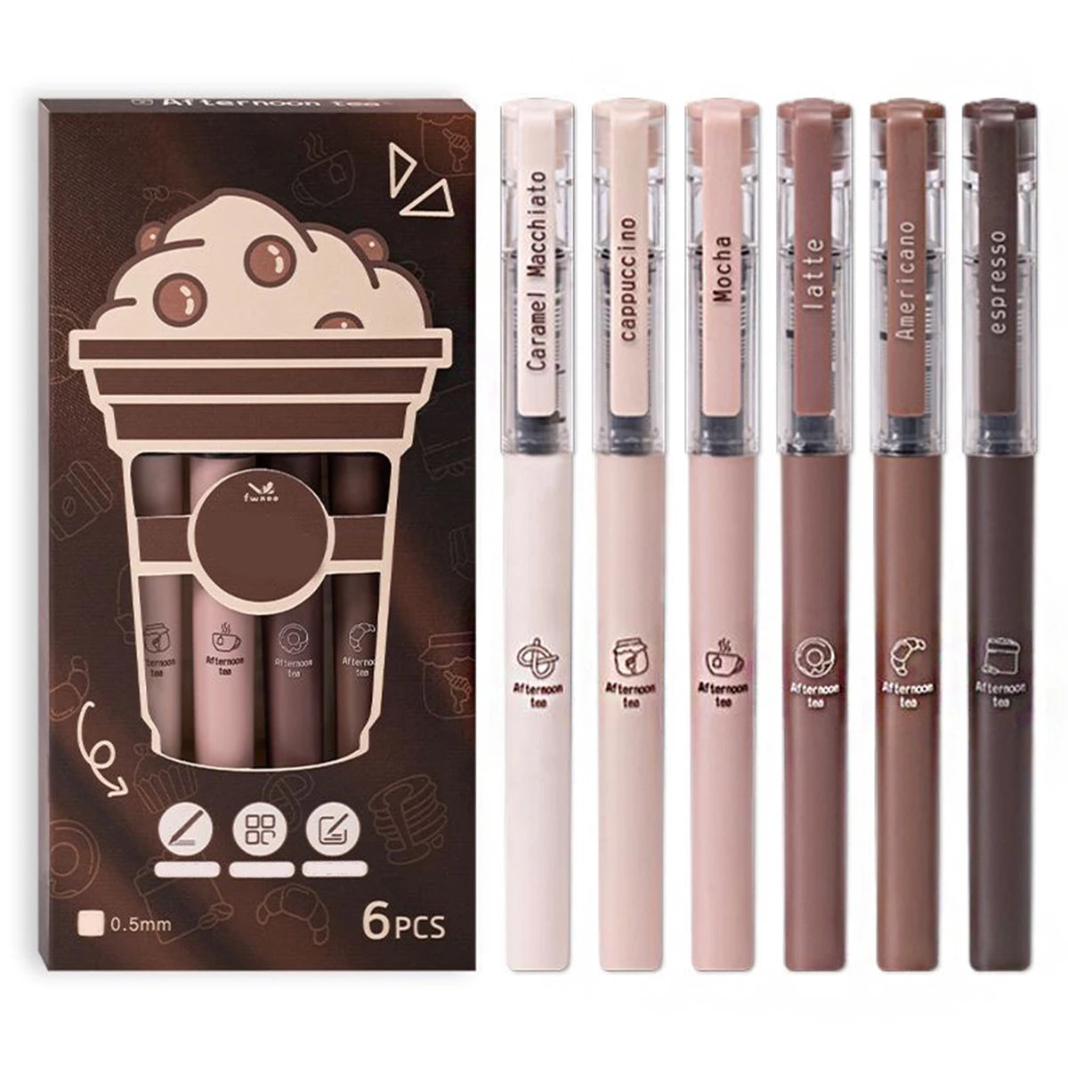 6pcs Cute Coffee Gel Pens - 0.5mm Fine Tip, Quick-drying Black Ink, Large Capacity, Suitable For Signature Writing