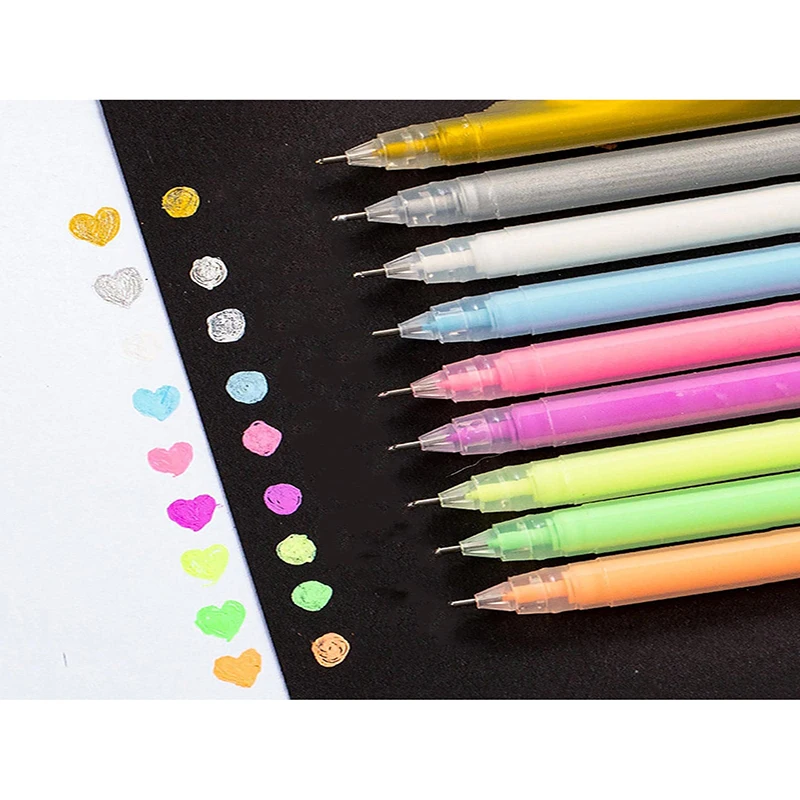 1.What will you get: You will get 3 pieces gold gel pens, 3 pieces silver gel pens, 3 pieces white gel pens, sufficient quantity enough for your daily drawing or writing requirements.