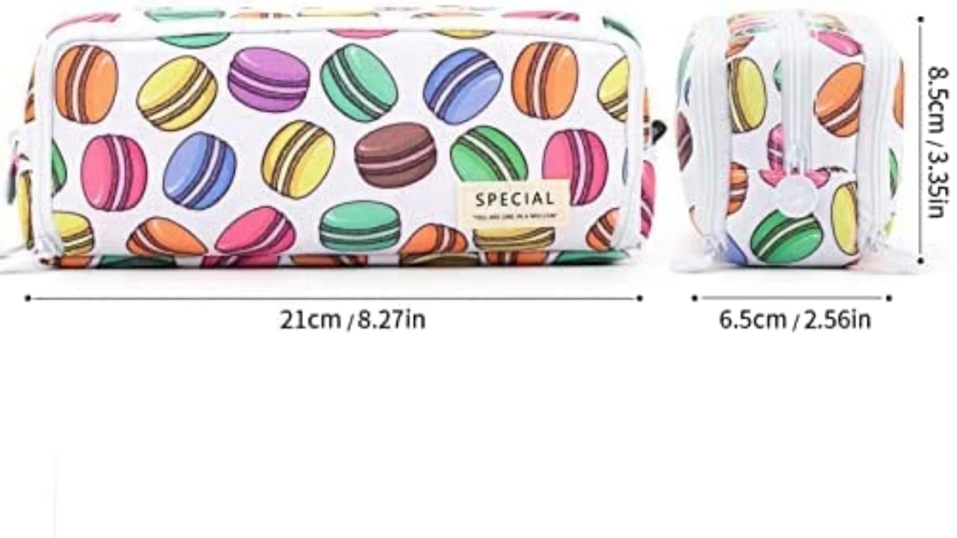 The size of this pencil case is 21*5*9cm. The pencil pouch is large enough to fit around 40 pens/ pencils, as well as erasers, mini stapler, sticky notes and other school supplies perfectly. You can easily toss it into your backpack.